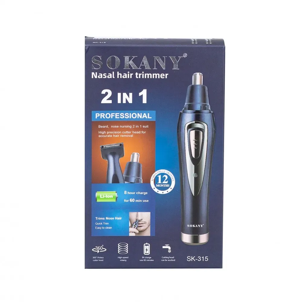 Тример для носа вух і брів 2 в 1 акумуляторний з насадками Sokany (SK315)
