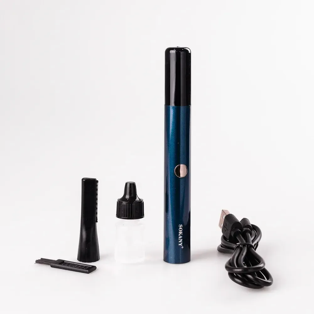 Тример для носа вух і брів акумуляторний із насадками та USB Sokany SK-320 Синій (SK320BL)