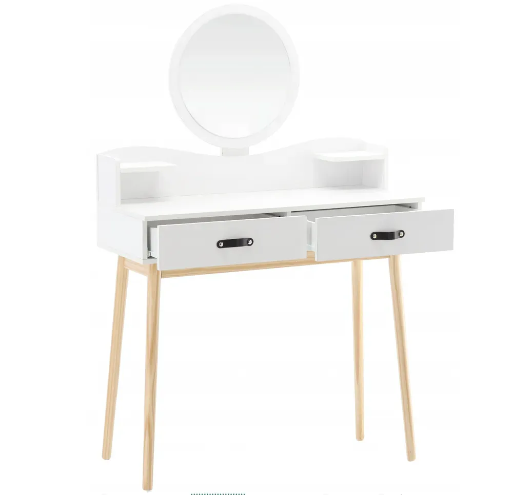 Туалетний столик має 2 шухляди, де можна зберігати косметику, прикраси та інші необхідні речі, а також 2 полиці.