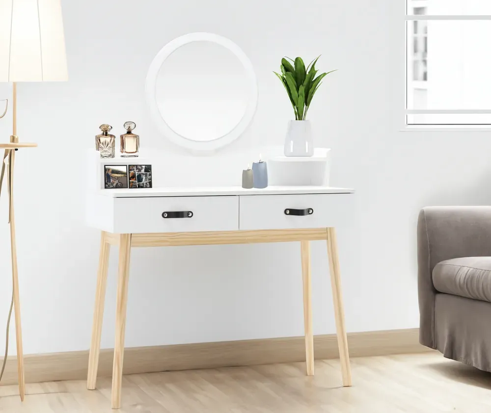 Простий скандинавський дизайн туалетного столика відрізняється простотою і мінімалізмом, характерними для скандинавського стилю. Яскраві кольори, натуральні матеріали та ергономічні форми створюють гармонійне ціле.