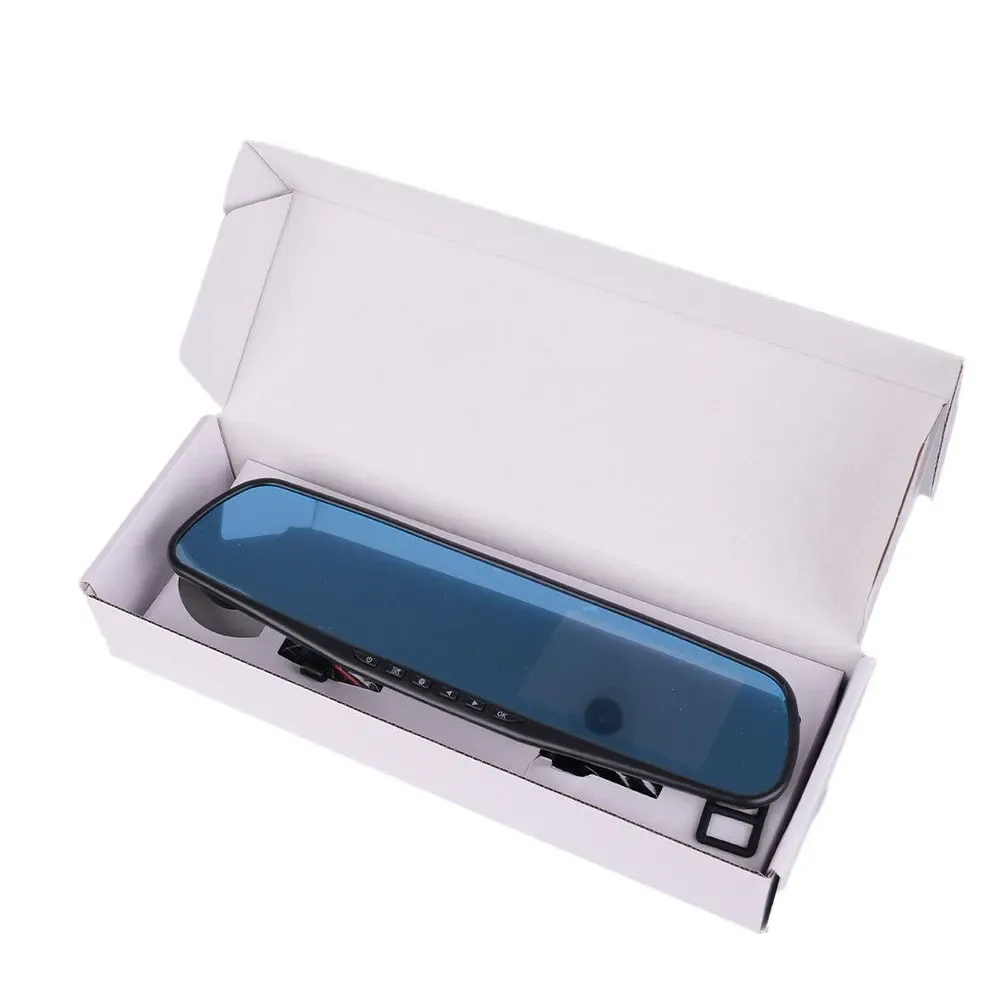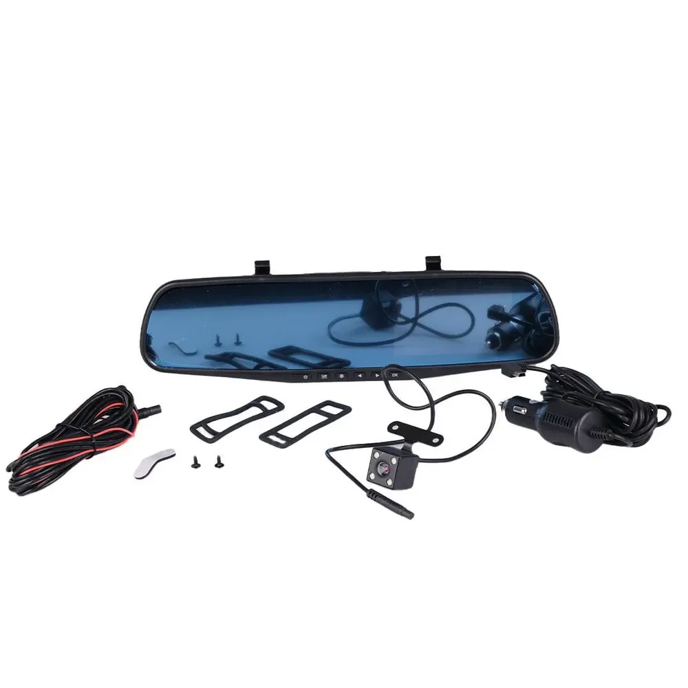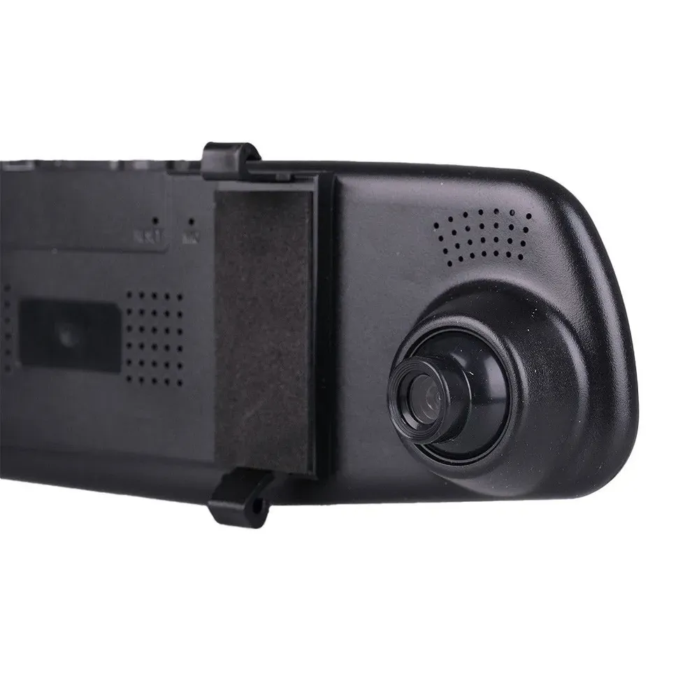 Дзеркало кріпиться на лобове скло, має сенсорний екран, розташований у правій частині, та 2 камери для фіксування обстановки спереду та ззаду авто. Основна камера з кутом огляду 170 градусів дозволяє записувати відео в FULL HD 1920 х 1080p.