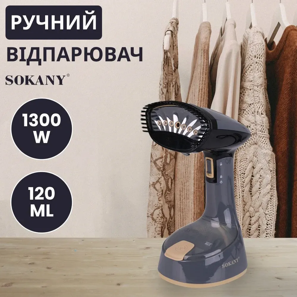 Відпарювач ручний вертикальний 1300 Вт парогенератор для одягу та штор від мережі SOKANY SK-GT-3065 (SKGT3065B)