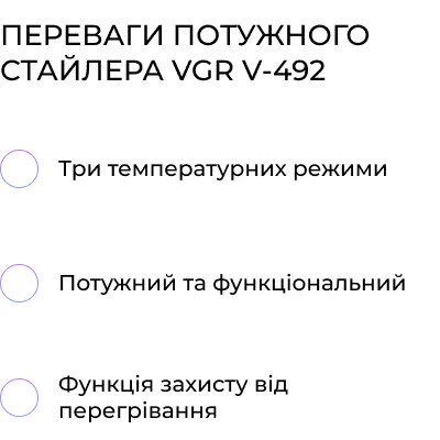 Випрямляч стайлер для волосся з іонізацією 3 температури 1000 Вт професійна фен гребінець VGR V-492 (VGRV492)