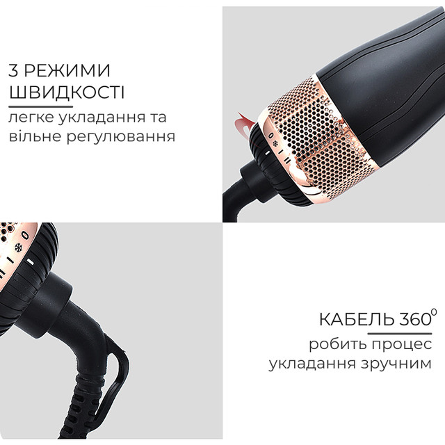 Мультистайлер дбайливо сушить волосся, не завдає шкоди їх структурі та забезпечує ефективне стійке укладання. Фен підійде для будь-якого типу та довжини волосся і стане незамінним помічником для вашої краси щодня.