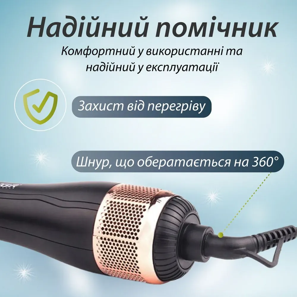 Прилад оснащений функцією іонізації, яка забезпечить вам ідеальне укладання без електризації та сплутування волосся.