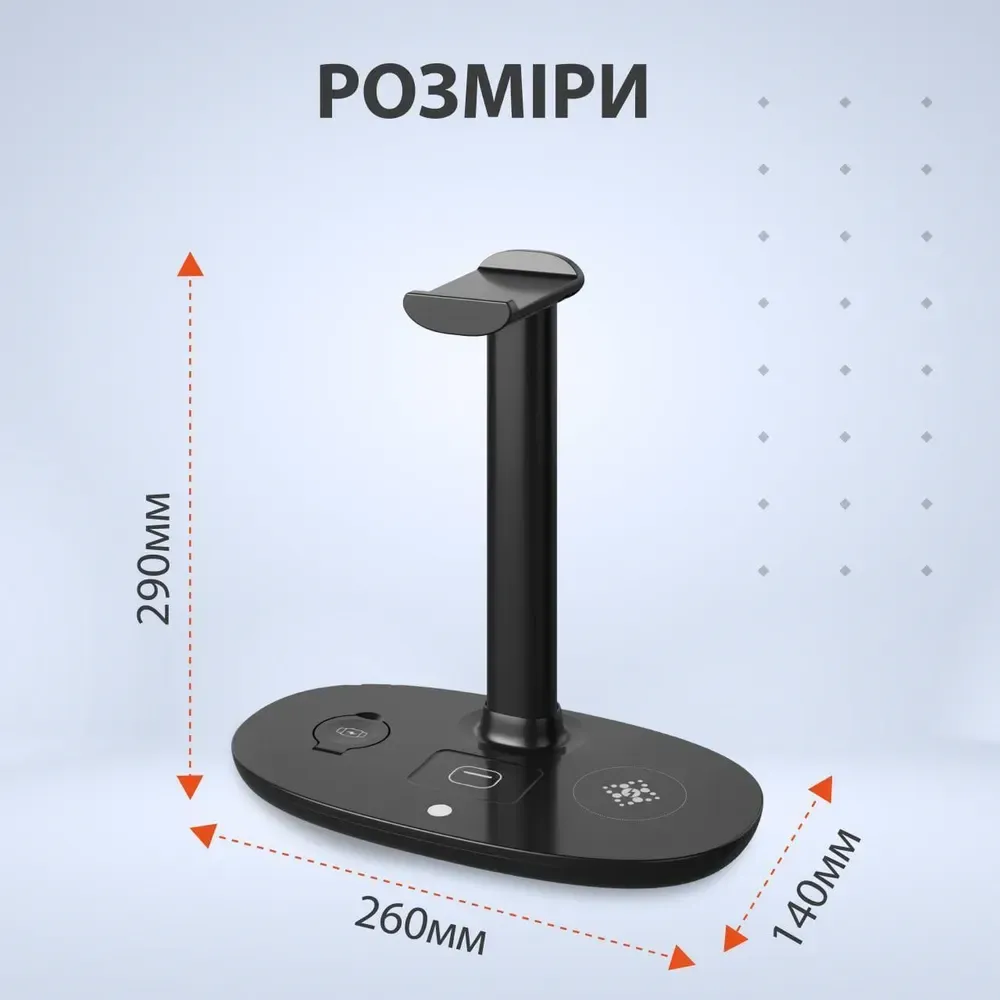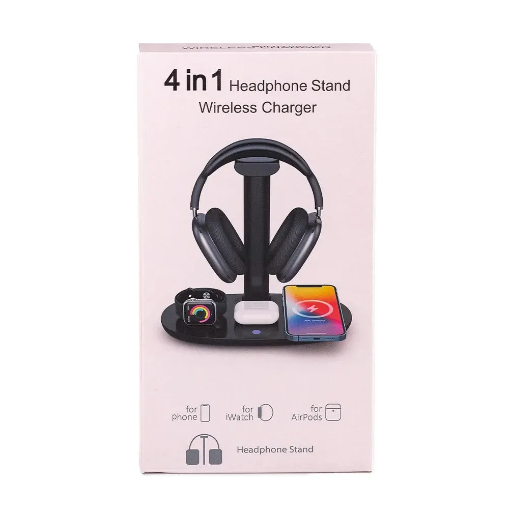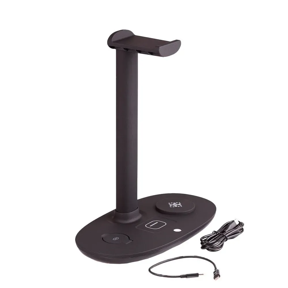Підставка для навушників 4 в 1, тримач для гарнітури + бездротовий зарядний пристрій - це стильне і практичне рішення для організації вашого робочого простору та ефективної зарядки ваших пристроїв.