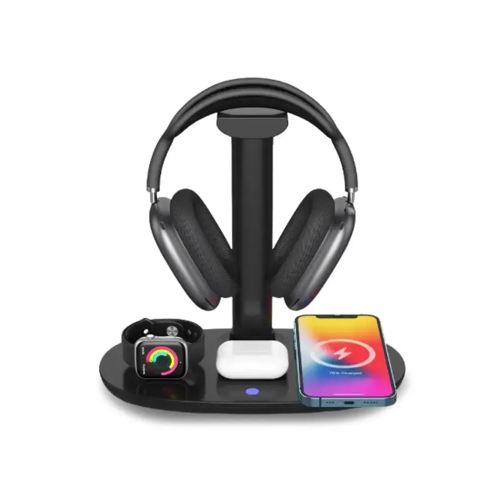 Зарядний пристрій бездротовий підставка для навушників 4в1 тримач для гарнітури IOS та Android (UR146B)