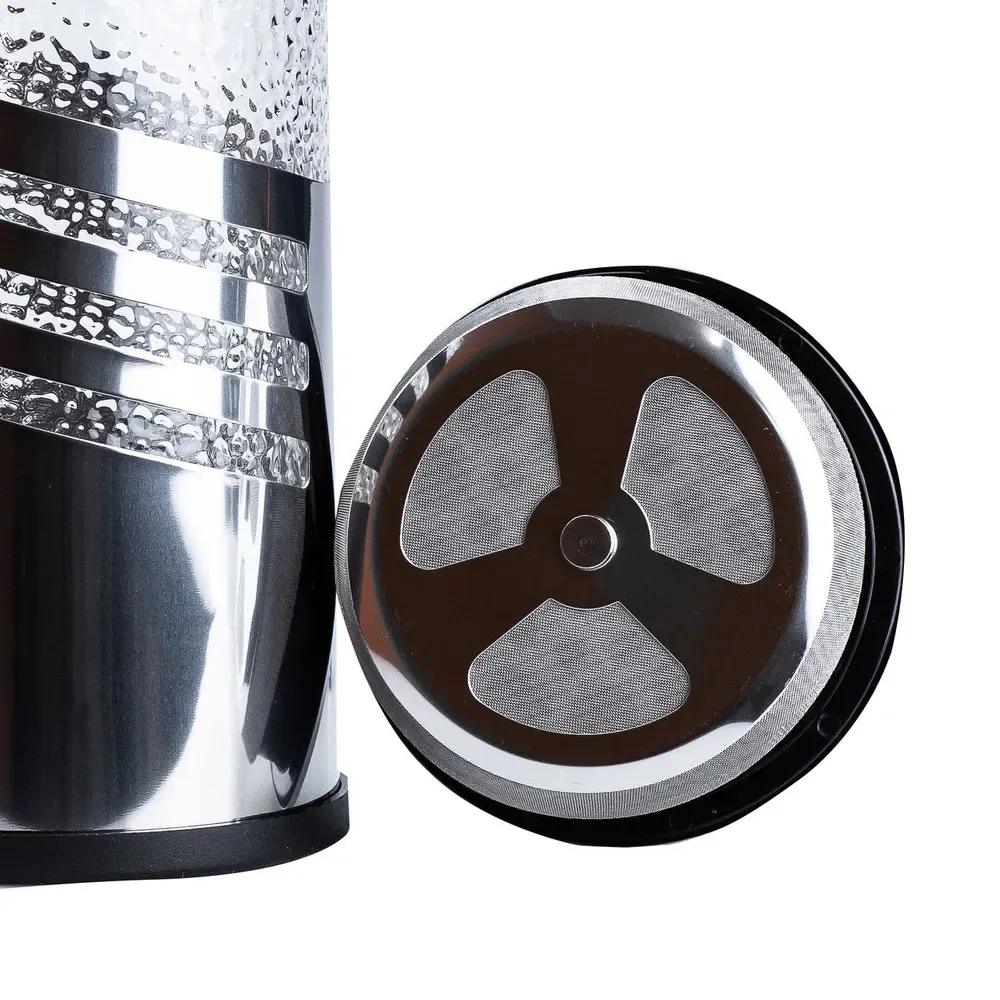 Цей скляний френч-прес - ідеальне поєднання функціональності та стилю для поціновувачів ароматної кави та чаю. Його елегантний дизайн та прозорі стінки дозволяють насолоджуватися красою та процесом заварювання напою. Спеціально розроблений фільтр усередині френч-пресу забезпечує ідеальне пропускання води через кавові гранули або чайне листя, що створює насичений та ароматний напій. Додатково він легко знімається для зручного очищення. Зручна ручка забезпечує комфортне захоплення та безпечне виливання гарячого напою.