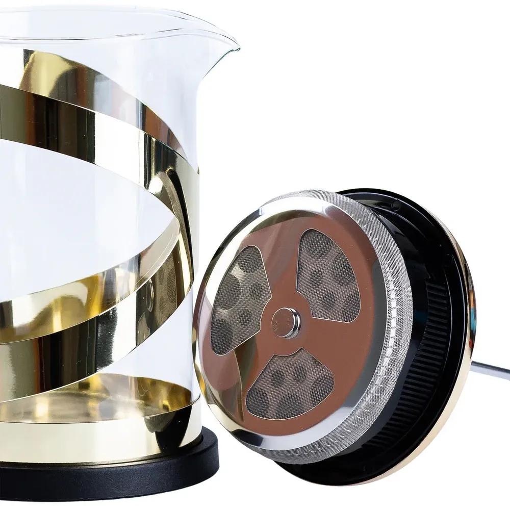 Цей скляний френч-прес - ідеальне поєднання функціональності та стилю для поціновувачів ароматної кави та чаю. Його елегантний дизайн та прозорі стінки дозволяють насолоджуватися красою та процесом заварювання напою. Спеціально розроблений фільтр усередині френч-пресу забезпечує ідеальне пропускання води через кавові гранули або чайне листя, що створює насичений та ароматний напій. Додатково він легко знімається для зручного очищення. Зручна ручка забезпечує комфортне захоплення та безпечне виливання гарячого напою.
