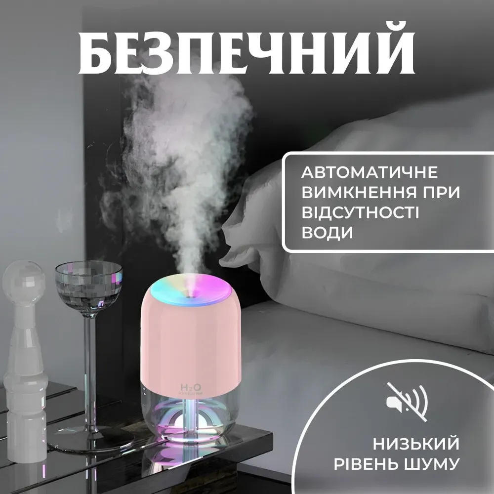 Зволожувач повітря для дому портативний USB 200 мл ароматичний дифузор з підсвічуванням Рожевий (HPBH16991P)