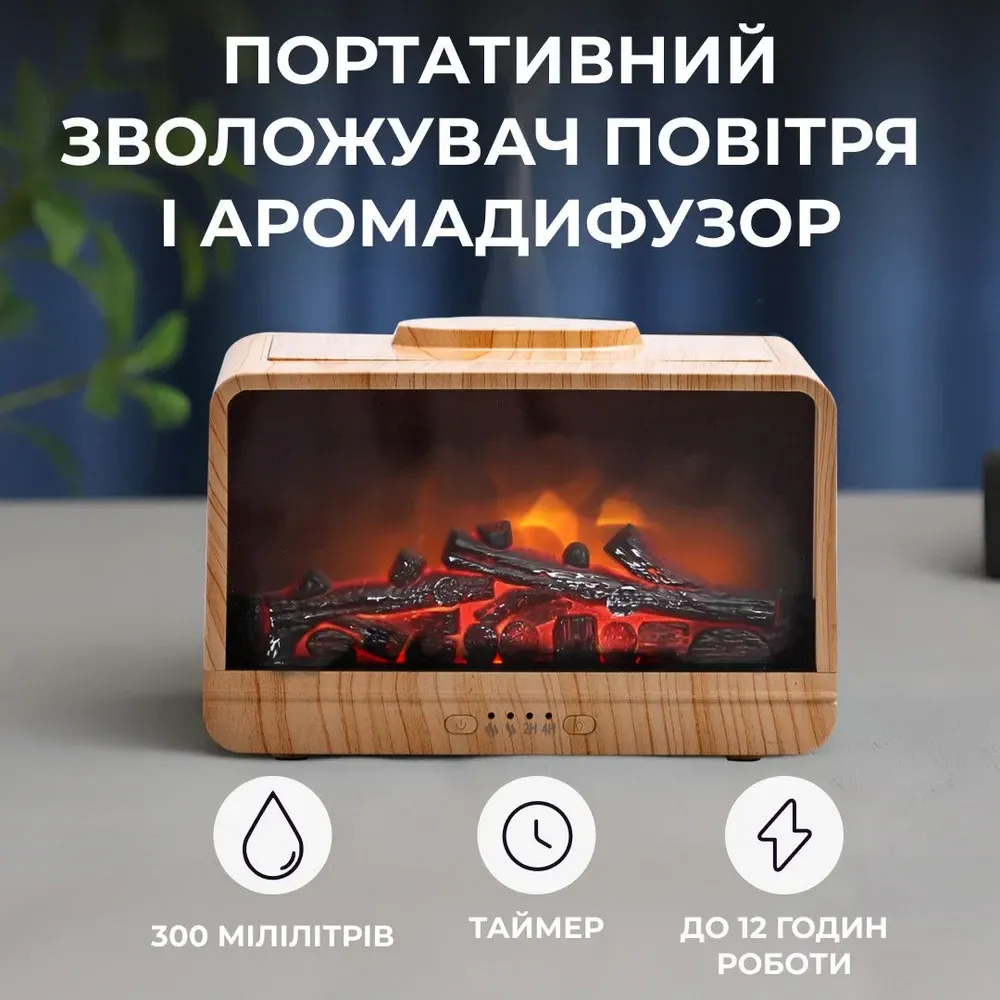 Портативний зволожувач повітря, виконаний у формі каміна з підсвічуванням, є елегантним і функціональним пристроєм для створення затишку у вашому будинку. Він не лише зволожує повітря, а й поширює приємні аромати, допомагаючи створити розслаблюючу атмосферу.