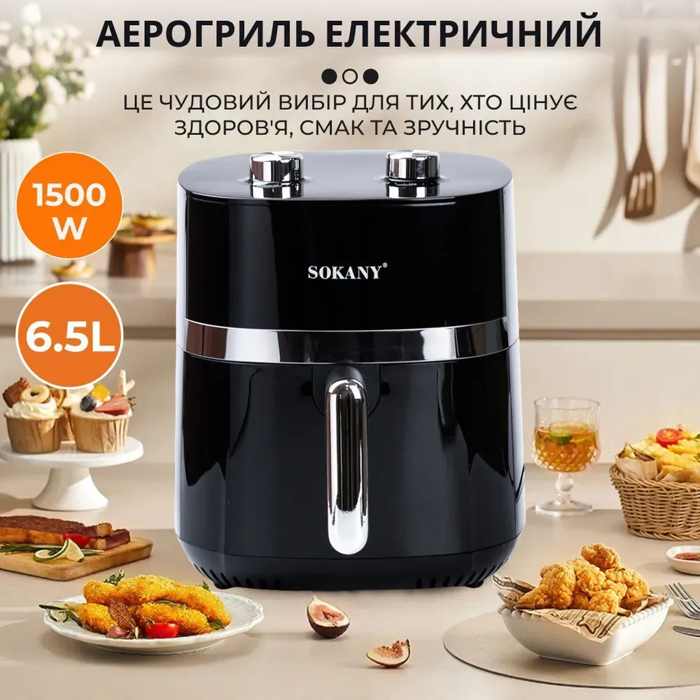 Аэрофритюрница электрическая с терморегулятором 6.5 л 1500 Вт аэрогриль SOKANY SK-10024 (SK10024)
