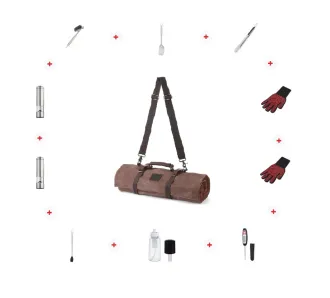 В акционный набор входит ТОП 10 самых необходимых premium аксессуаров для для гриля мангала и любого типа барбекю! Экономия 1 520 грн. Primo 1. Скрутка органайзер для барбекю инструментов (для хранения и удобной транспортировки) 2. Щетка для очистки Premium 3в1 щетка+скребок+открывашка (используется для очистки решеток, сеток и поверхностей) 3. Лопатка для BBQ 45 см (используется для переворачивания и выкладывания продуктов в процессе приготовления, рыба, котлеты и т.д.) 4. Щипцы для гриля 45 см (используется для переворачивания и выкладывания продуктов, мясо, овощи, колбаски, море продукты и т.д.) 5. Распылитель для масла (используется для смазывания продуктов и поверхностей, предотвращает прилипания продуктов к поверхностям) 6. Цифровой термометр (используется для определения готовности продуктов и степеней прожарки, если термометр показал 70 градусов по Цельсию или 158 по Фаренгейту, это Well done 100% готовый продукт, его нужно снимать иначе он будет пересушен) 7. Две термо-перчатки для гриля (используются для работы с любыми горячими предметами, раскаленными сковородками, ВОКами и т.д.) 8. Кисточка для BBQ (используется для смазывания продуктов и поверхностей маслом и маринадами, предотвращает прилипание продуктов к поверхностям) 9. Две электрические мельницы для перца или соли (используются для регулируемого автоматического помола перца/соли, можно перчить/солить одной рукой, работает от 4-х батареек типа АА) Во время гриллинга очень важно, чтоб все самые востребованные аксессуары были легко доступными, собранными в удобном для вас месте, а при необходимости, комфортно транспортированы к месту готовки. Каждый любитель барбекю хоть один раз, но сталкивался с ситуацией, когда был забыт необходимый аксессуар, без которого приготовление стало менее комфортным, либо вообще невозможным. Как неудобно переносить большое к-во инструментов, особенно если это касается организации выезда на природу. Бывают и другие, не менее важные задачи, например, выбор подарка для фаната гриля и барбекю, что несомненно не самое легкое занятие … Для таких целей мы подготовили комплексное решение, которое поможет закрыть всевозможные задачи и потребности: по приобретению, хранению, транспортировке всех востребованных инструментов для барбекю, а также в выборе подарка, который гарантированно понравится любому шеф-повару! «Что это может быть?» —спросите вы. Это высококачественное изделие называется - «скрутка». К тому же, к ней, мы подобрали все самые необходимые и самые востребованные инструменты, которые применяются во время любого приготовления блюда на гриле, барбекю или мангале… В этот комплект входит: скрутка, металлическая щетка, лопатка, щипцы, кисточка для BBQ, две электрические перцемолки, распылитель масла, термометр и две жаростойкие перчатки. Скрутка – это основной элемент этой сборки, она позволяет разместить в себе все перечисленные инструменты. Благодаря чему вы без лишних хлопот сможете перемещать и хранить их. Не важно, где и когда они вам понадобятся, в любой момент аксессуары будут доступны и что не мало важно, собраны в одном месте. Щетка необходимый аксессуар для поддержания чистоты решетки гриля, а также идеально подойдет для чистки барбекю-решетки, использованной на мангале. Лопатка великолепно справляется с задачей, когда необходимо перевернуть объемн