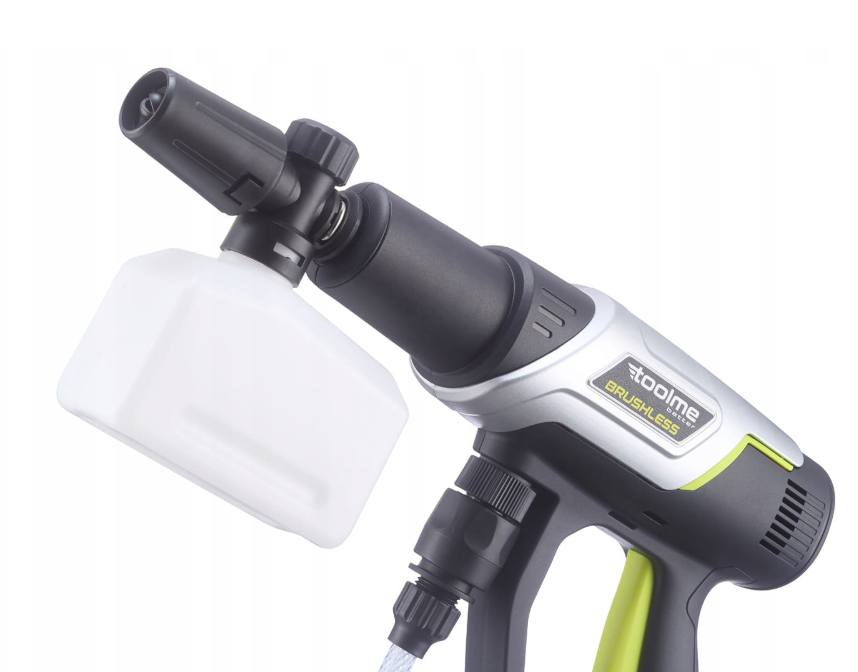 Акумуляторна мийка високого тиску Toolme TM280 PRO BRUSHLESS 450 Вт з алюмінієвою помпою, 2 АКБ 21В, піногенератор (Польща)