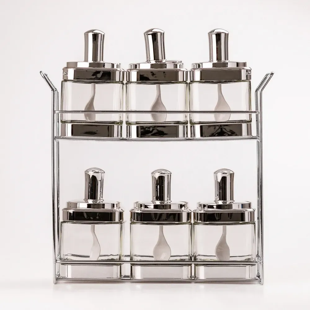 Банки для сыпучих продуктов набор из 6 шт. стеклянные емкости для хранения с ложкой на металлической подставке (HP531FS1032Y)