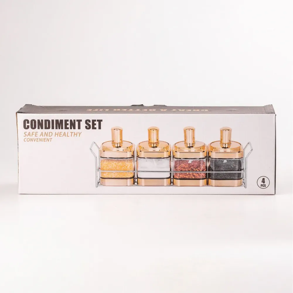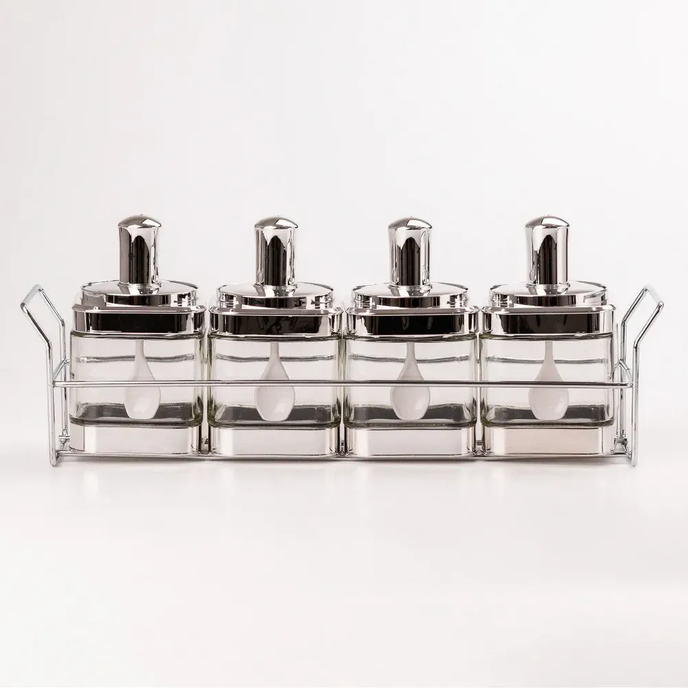 Банки для сыпучих продуктов набор из 4 шт. стеклянные емкости с ложкой на металлической подставке. (HP531FS1031Y)