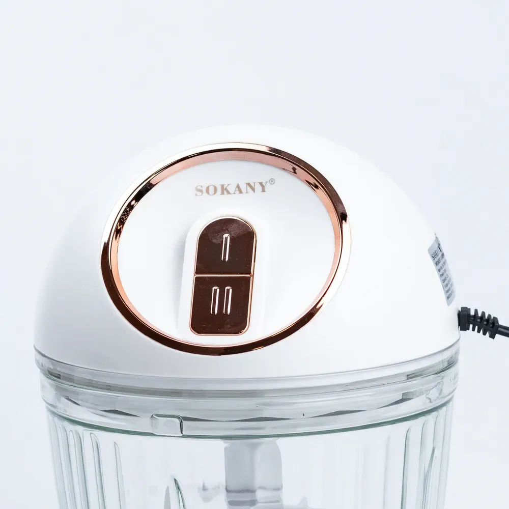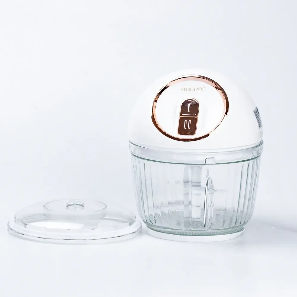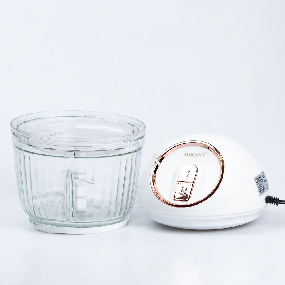- Мощность и производительность. С мощностью 750 Вт этот чоппер от Sokany является надежным и эффективным помощником на вашей кухне. Он легко справляется с разными задачами, обеспечивая высокую производительность. Большой объем емкости. Чопер поставляется с миской объемом 2.5 литра, что делает его идеальным для приготовления больших порций блюд. Двухместное лезвие для перемешивания. Уникальное двойное лезвие обеспечивает эффективное перемешивание и измельчение различных продуктов, обеспечивая идеальную текстуру блюд.