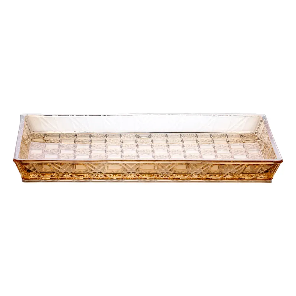 Блюдо для закусок скляне має прямокутну форму з розмірами 27,5*13,5 см та висотою 2,5 см. Виготовлене з прозорого скла, що забезпечує його універсальність у використанні. Плоска конструкція дозволяє рівномірно розміщувати закуски, десерти або інші продукти. Основні характеристики: Матеріал: скло; Розмір: 27.5х13.5х2.5 см; Форма: прямокутна; Призначення: для закусок, фруктів, десертів. Дизайн виробу лаконічний, без зайвих декоративних елементів. Прозорий матеріал забезпечує видимість вмісту, що сприяє привабливій подачі страв. Гладка поверхня не вбирає запахи та легко очищується після використання. Блюдо призначене для сервірування холодних і гарячих закусок, фруктів, випічки або сиру. Підходить для щоденного використання та святкових подій. Виріб можна мити в посудомийній машині, що полегшує догляд.