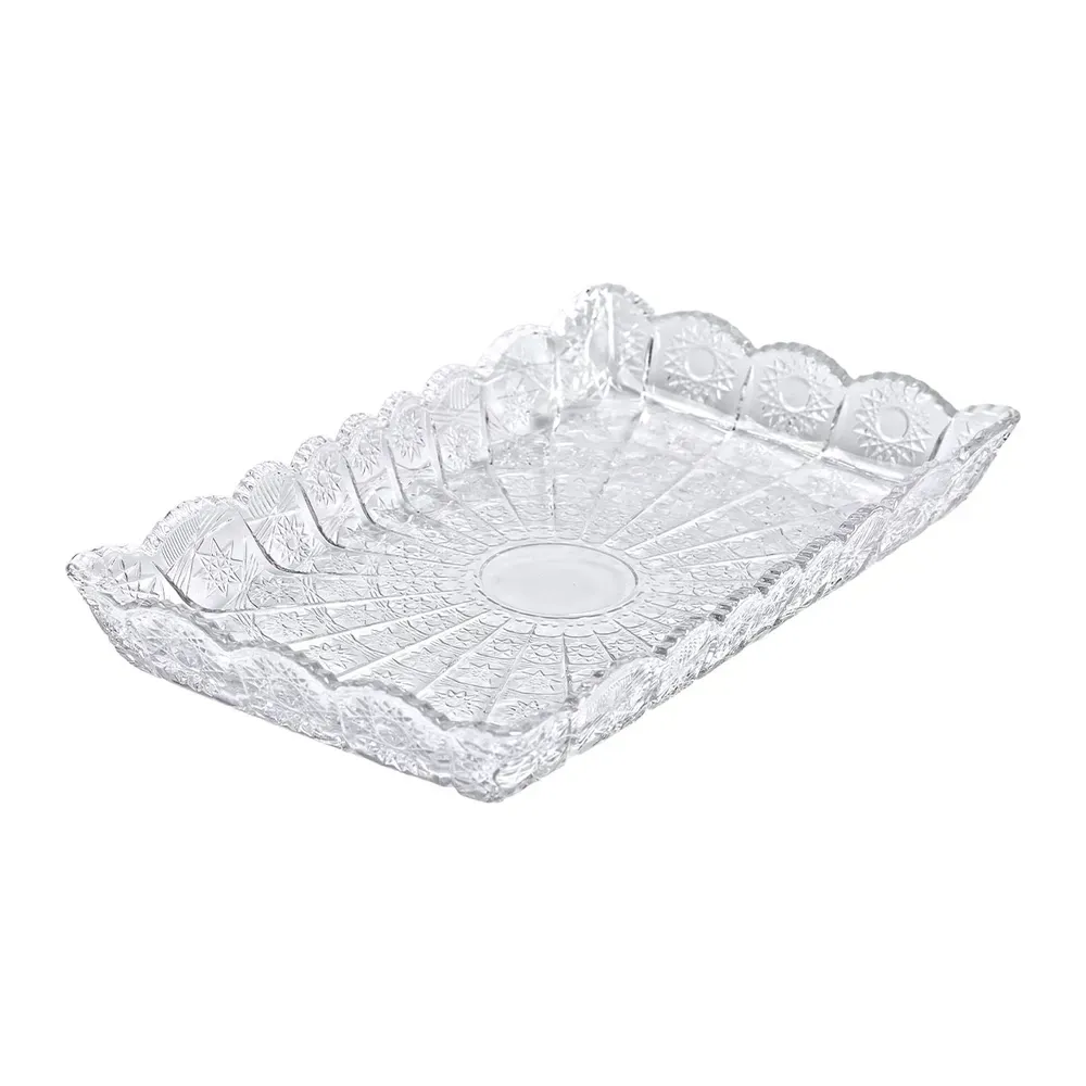 Прямокутне скляне Блюдо для закусок - стильне і практичне рішення для подачі свіжих фруктів або інших закусок. Його елегантний прямокутний дизайн додає сучасного вигляду сервіровці, роблячи її універсальним вибором для будь-якого святкового або повсякденного столу. Прозоре скло дає змогу красиво демонструвати фруктову композицію, підкреслюючи яскравість і натуральну красу продуктів. Основні характеристики: Матеріал: скло; Розмір: 28.6х16.5х3 см; Форма: прямокутна. Блюдо для закусок ідеально підходить для використання на святкових заходах, сімейних обідах або як декоративний елемент на журнальному столику. Легкість у догляді та стильний вигляд роблять її не тільки практичною, а й привабливою частиною будь-якого інтер'єру. Завдяки своїй формі та розмірам, ця тарілка дає змогу розмістити на ній різноманітні закуски, додаючи вашому столу елегантності та свіжості.