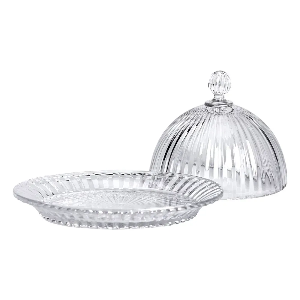 Блюдо сервірувальне з кришкою Ø 20 см скляне прозоре для десертів, випічки, фруктів HP-YH-43 (HP-YH-43)