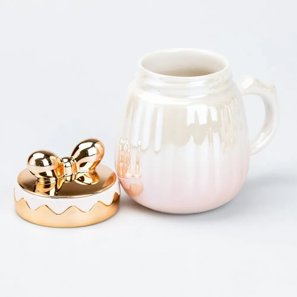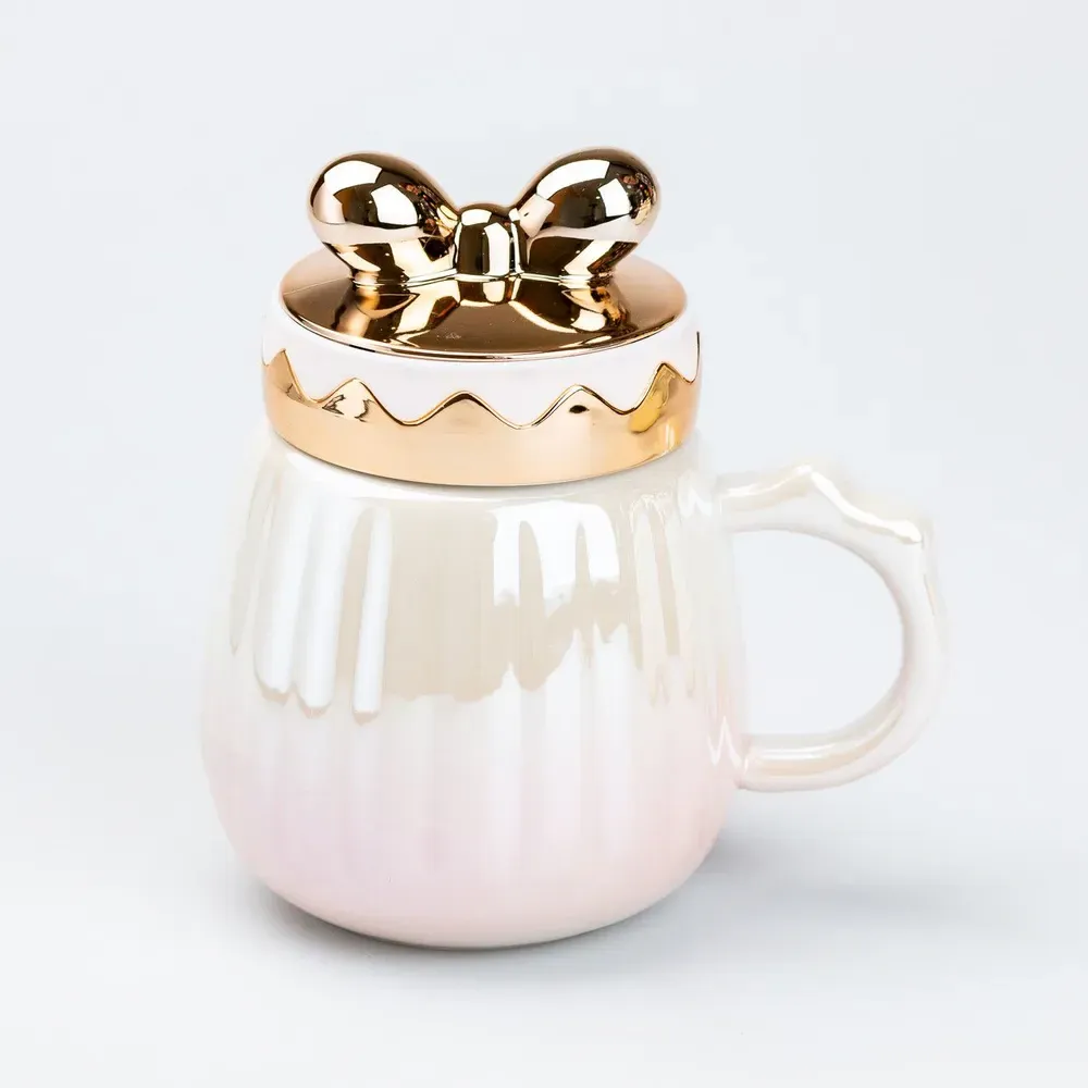Чашка 500 мл с крышкой "Бант" керамическая Розовая (HP7194P)