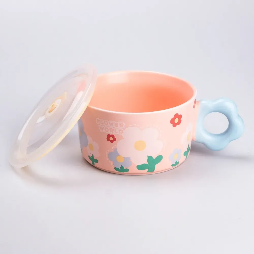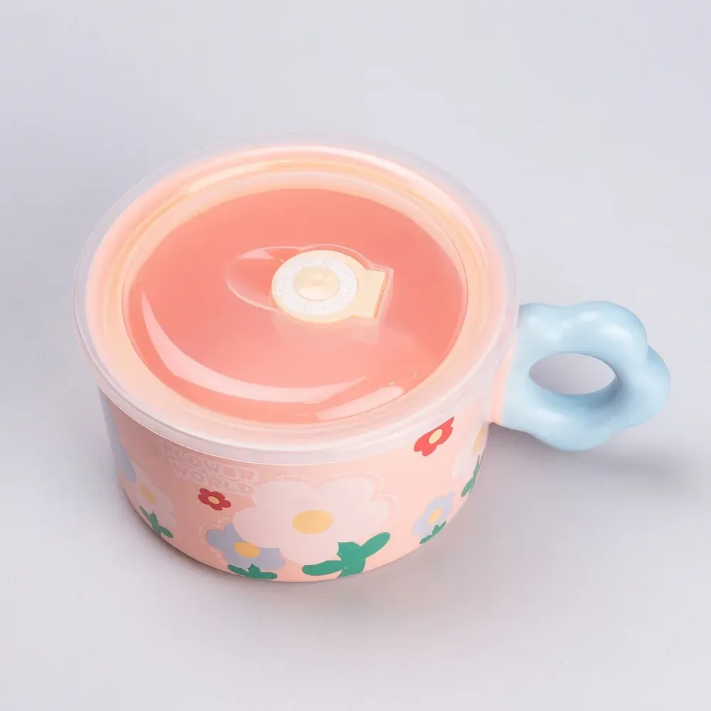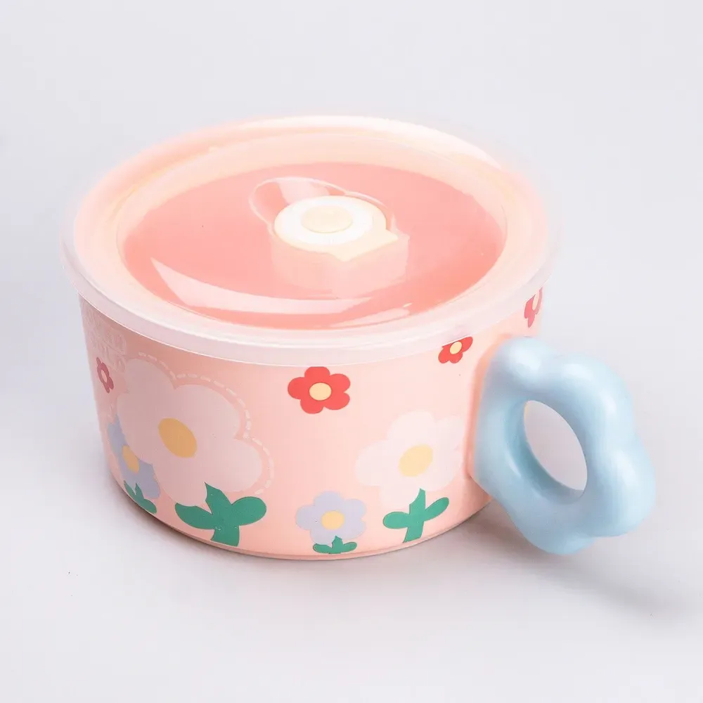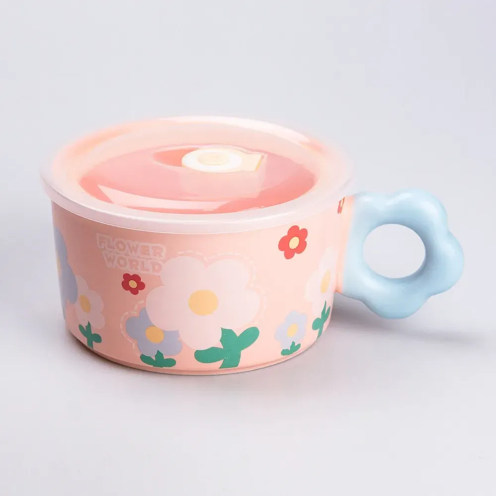 Кружка супница украшена изображениями цветочков, рисунок устойчив к моющему средству и не стирается со временем. . Эта миска будет идеальным выбором для сервировки горячих бульонов или лапши.