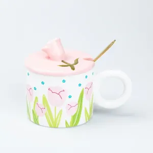 Чашка керамическая с ложкой и крышкой 300 мл. Эта красивая керамическая чашка с крышкой и ложкой однозначно станет вашей любимицей! Она неприхотлива в эксплуатации, отлично сохраняет тепло и подойдет как для офиса, так и для дома. наслаждаться чаем или кофе дольше.
