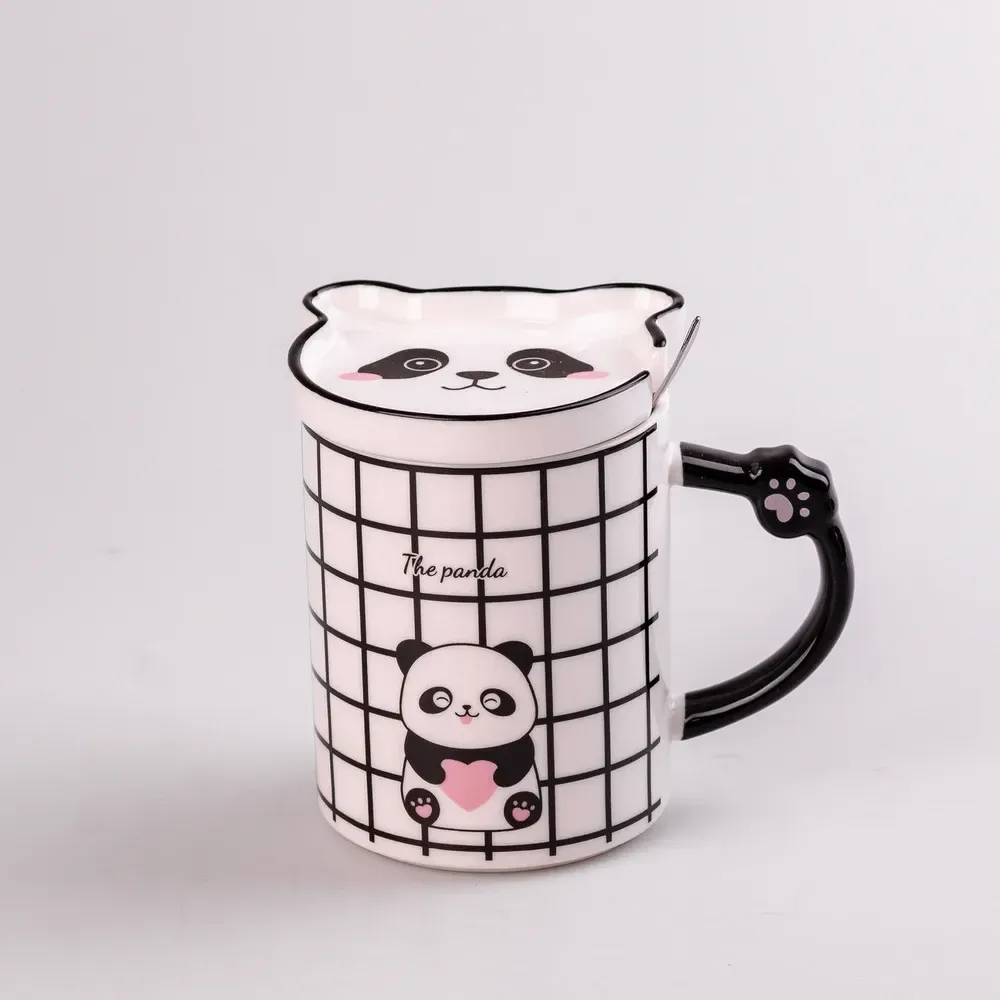 Чашка керамическая 350 мл Panda с блюдцем и ложкой (HPCY8369C)