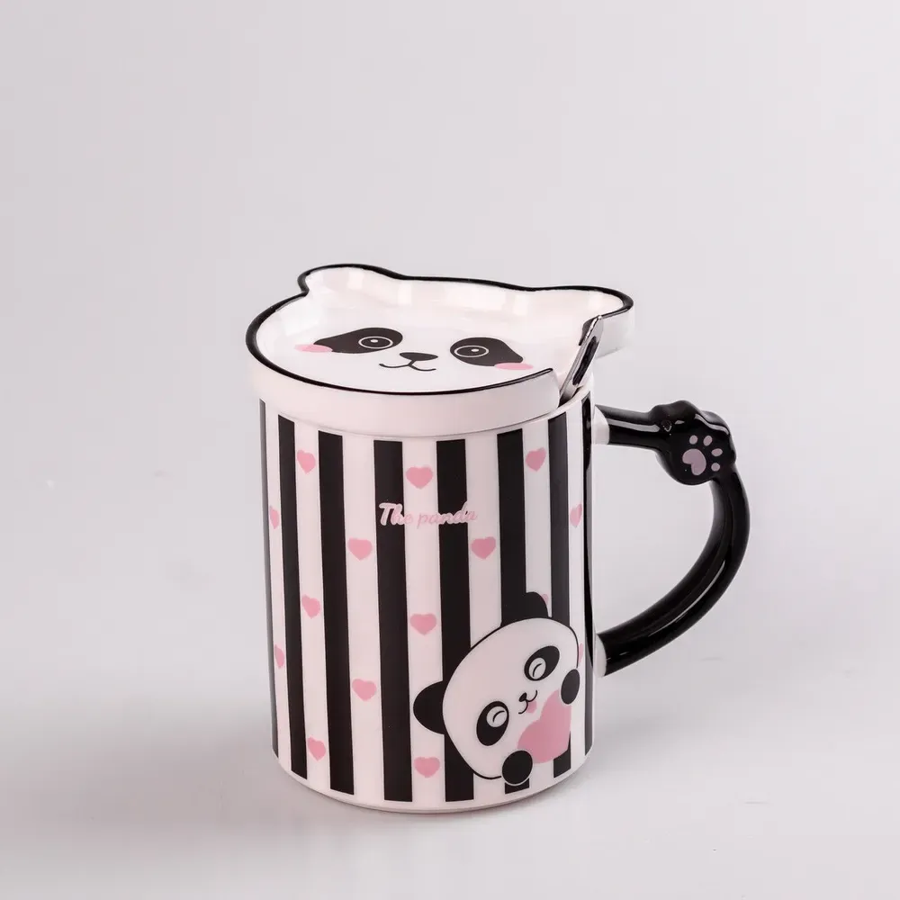 Чашка керамическая 350 мл Panda с блюдцем и ложкой (HPCY8369ST)