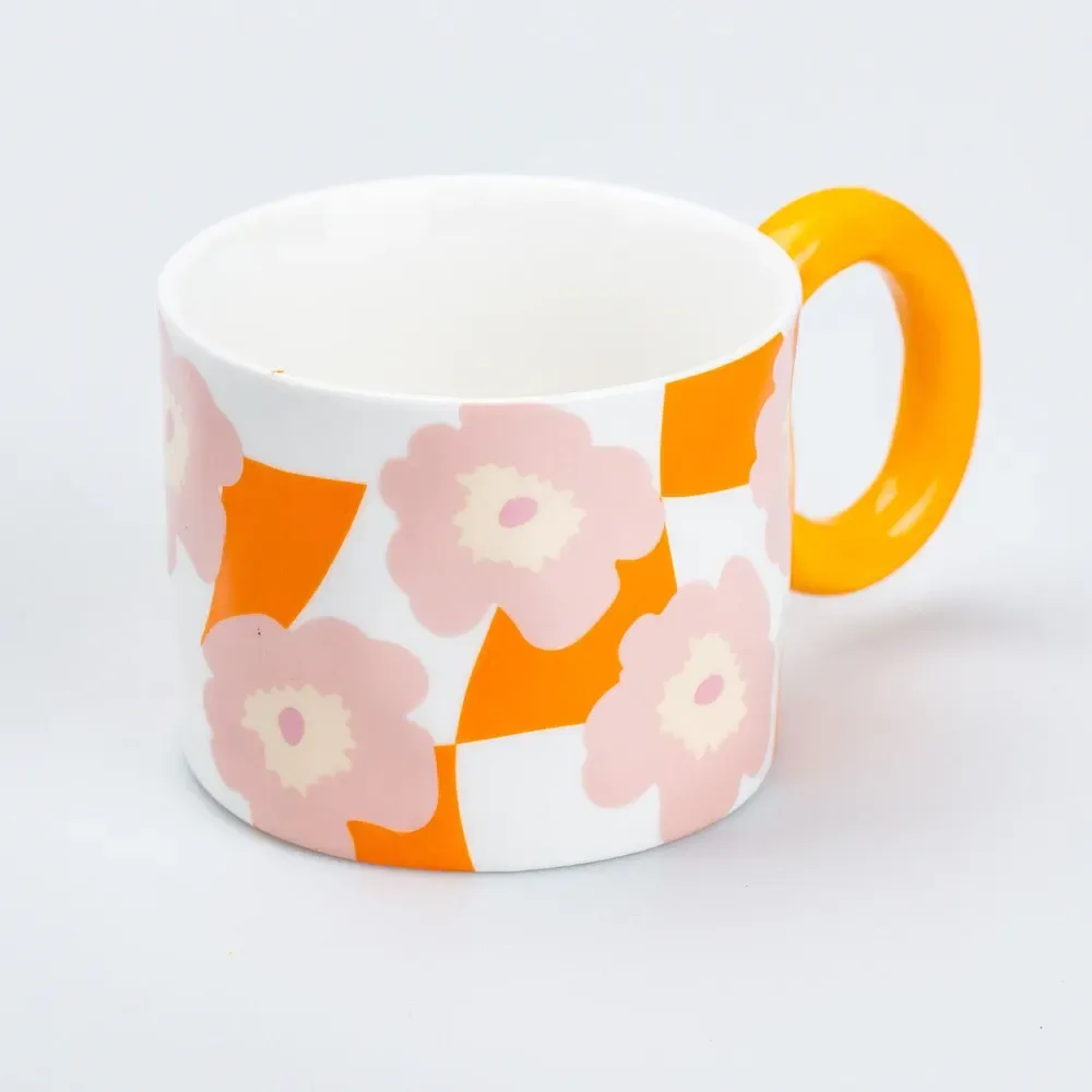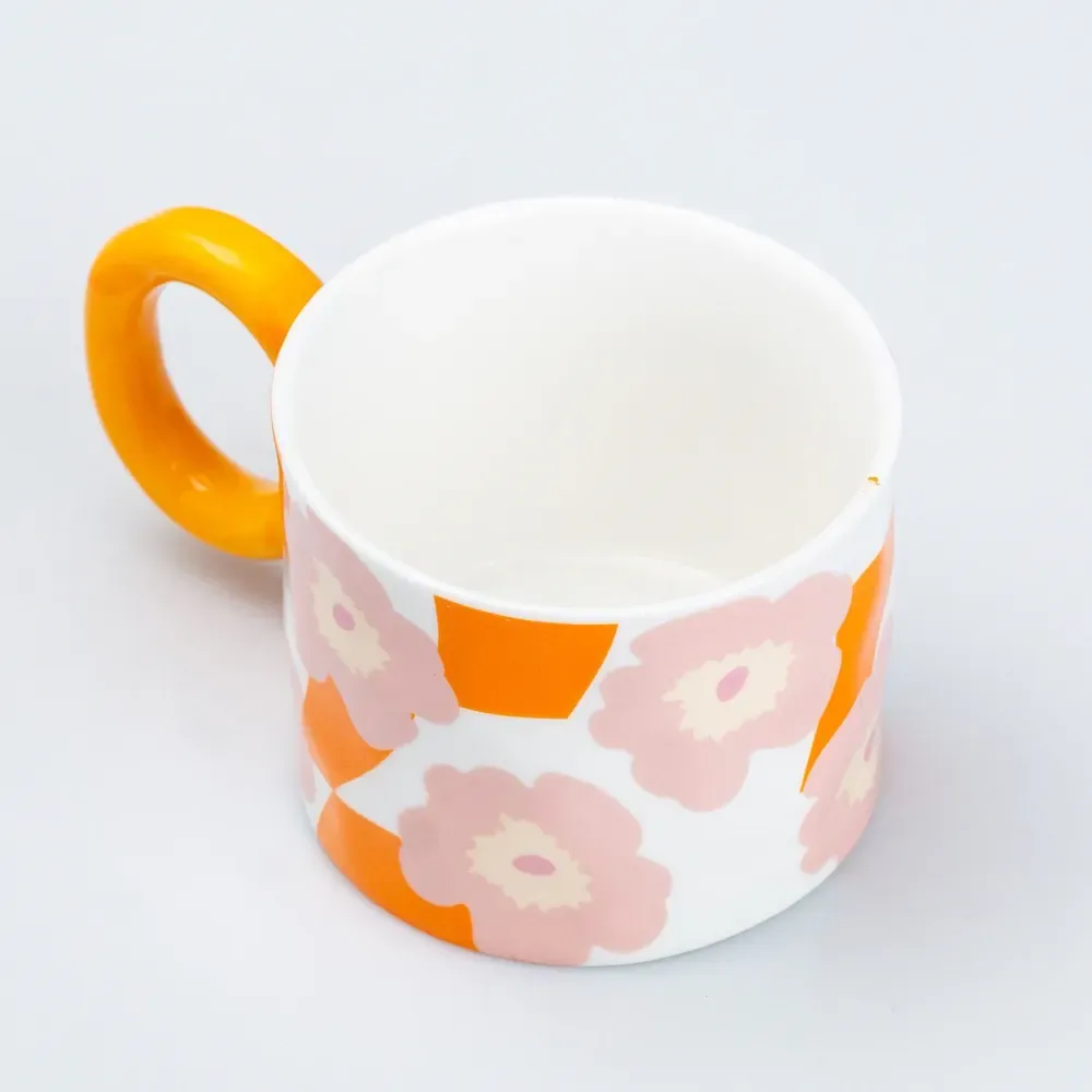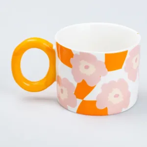 Чашка керамическая 400 мл для чая и кофе "Цветок" Оранжевая (HP7197O)