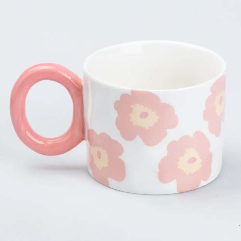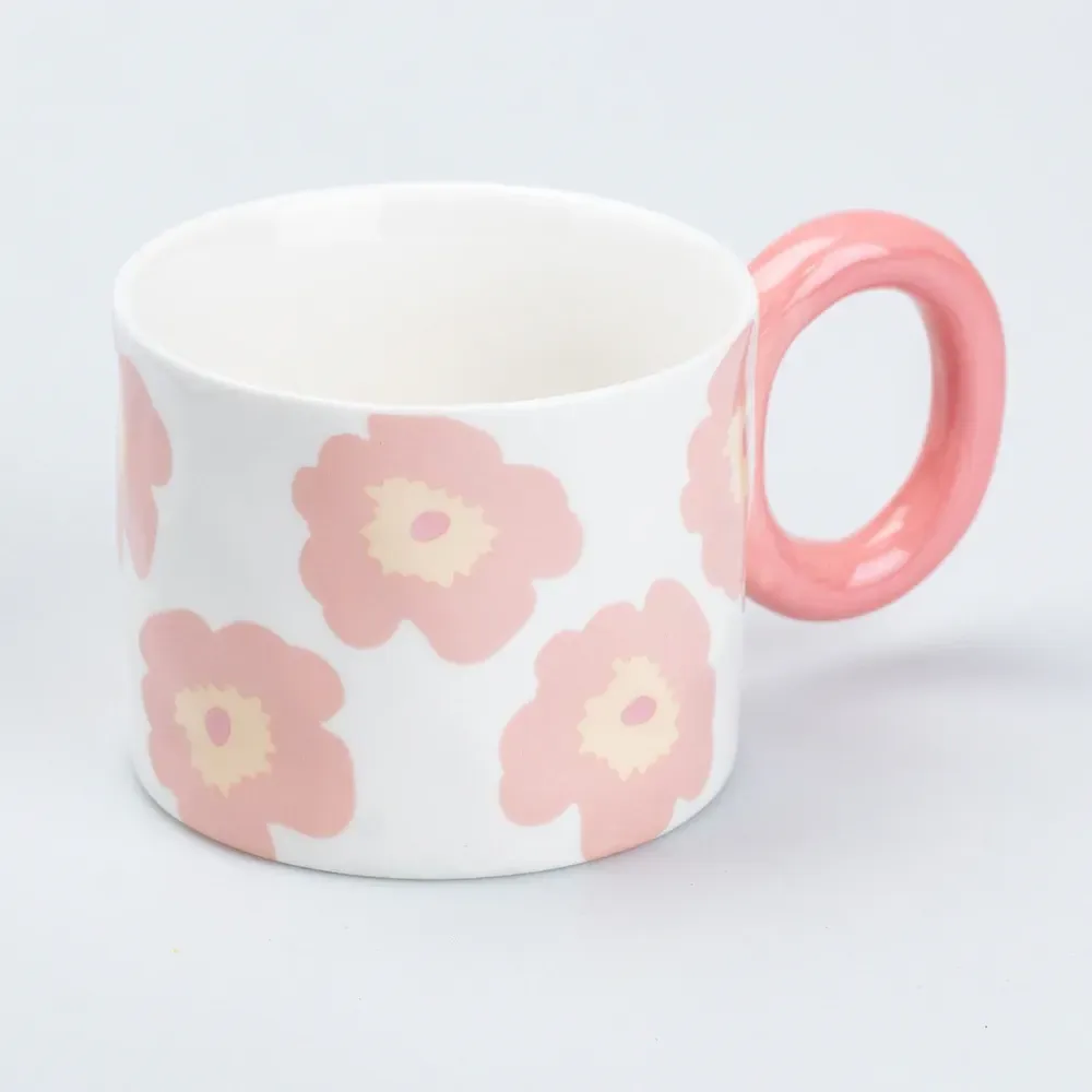 Чашка керамическая 400 мл для чая и кофе "Цветок" Розовая (HP7197P)