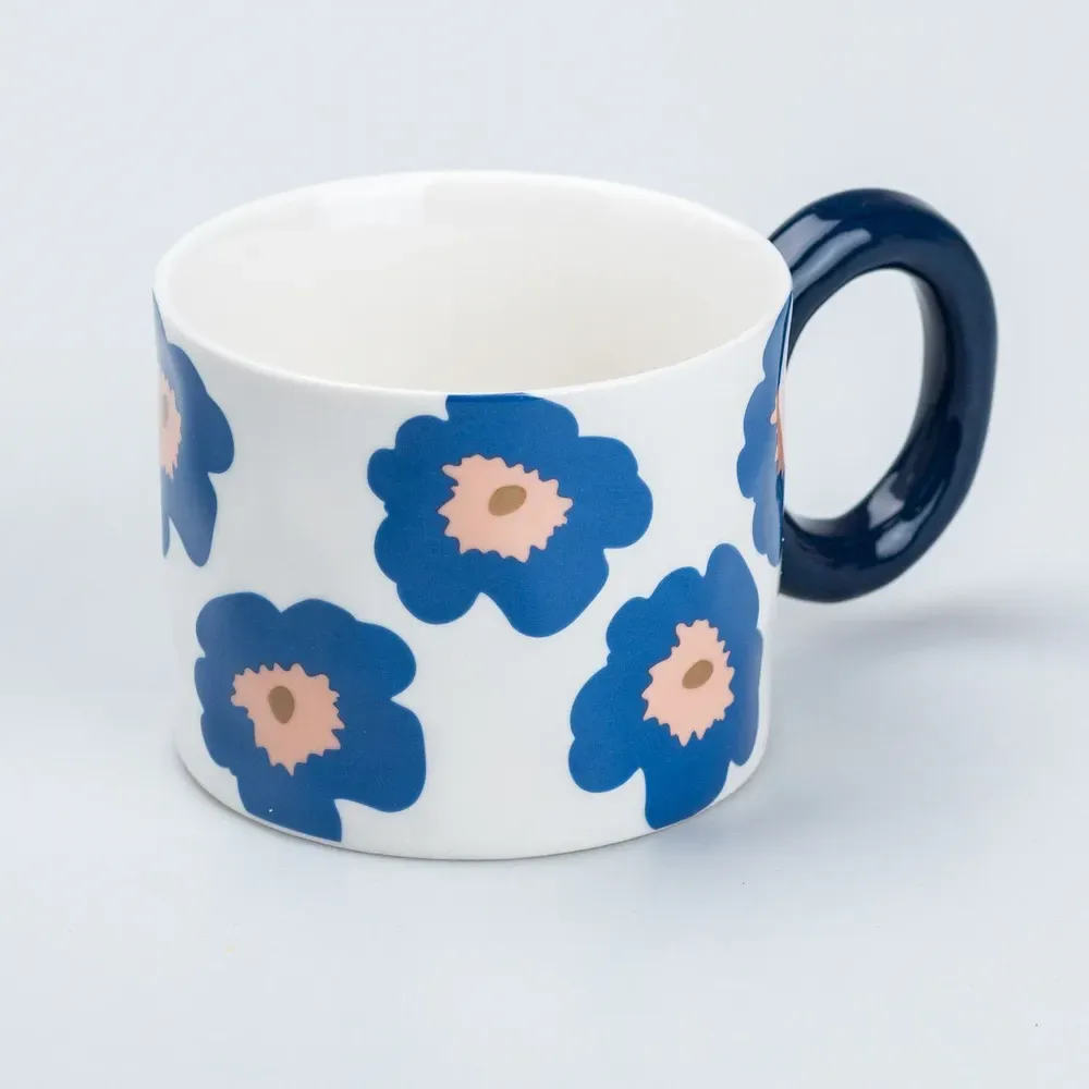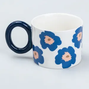 Чашка керамическая 400 мл для чая и кофе "Цветок" Синяя (HP7197BL)