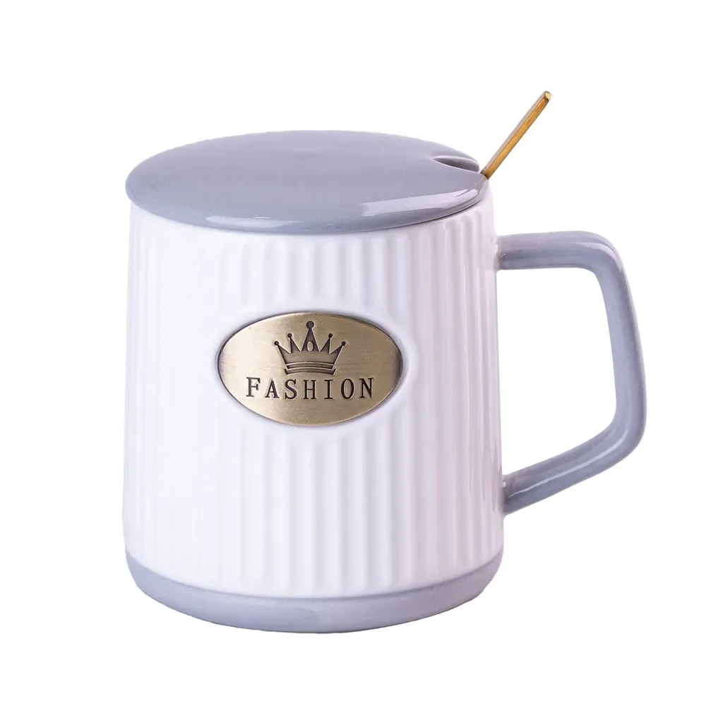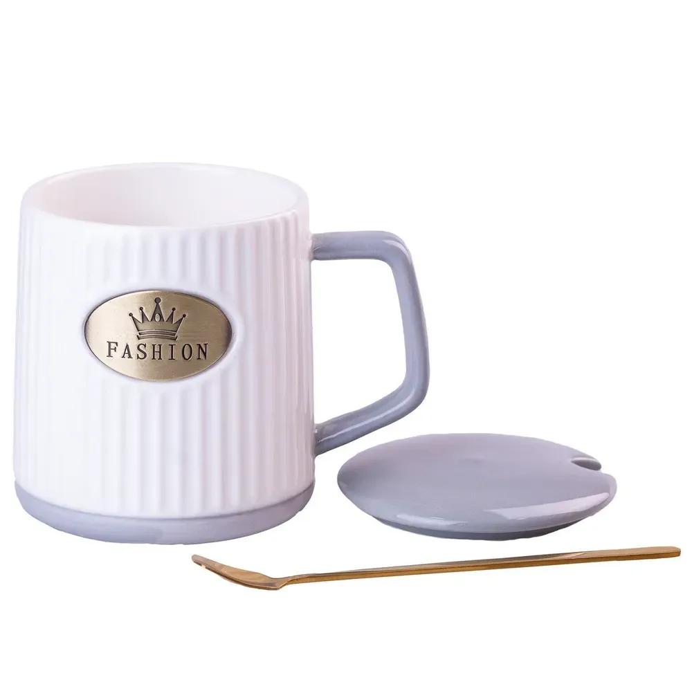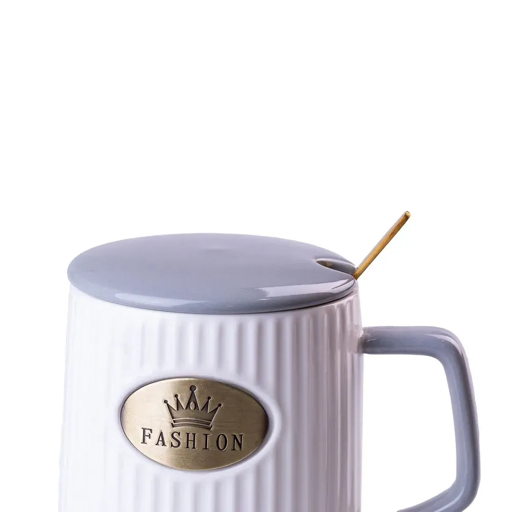 Чашка керамическая 400 мл Fashion с крышкой и ложкой (HP403G)