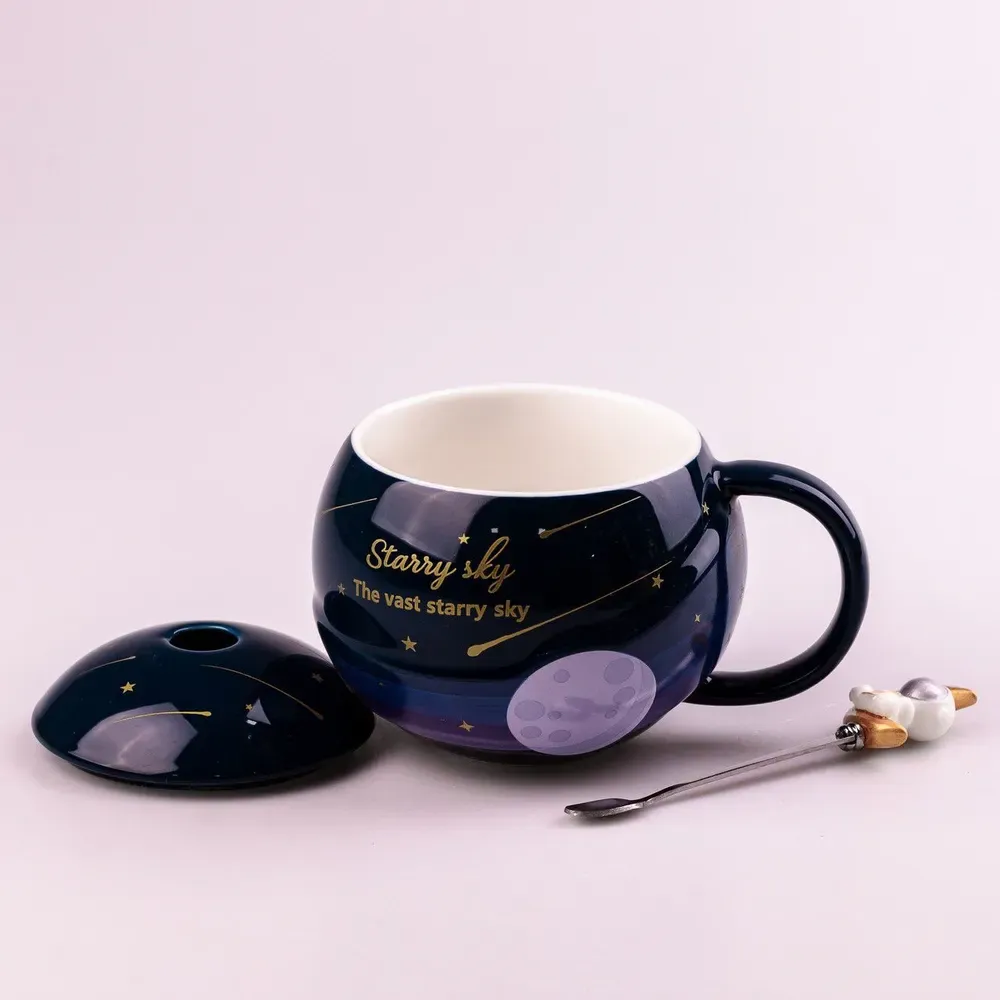 Чашка керамическая 400 мл Космонавт с крышкой и ложкой 400 мл (HP877NB)