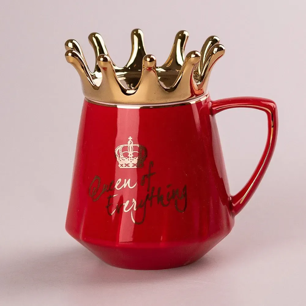 Чашка керамическая 400 мл Queen of Everything с крышкой и ложкой Красный (HPCYM0752R)