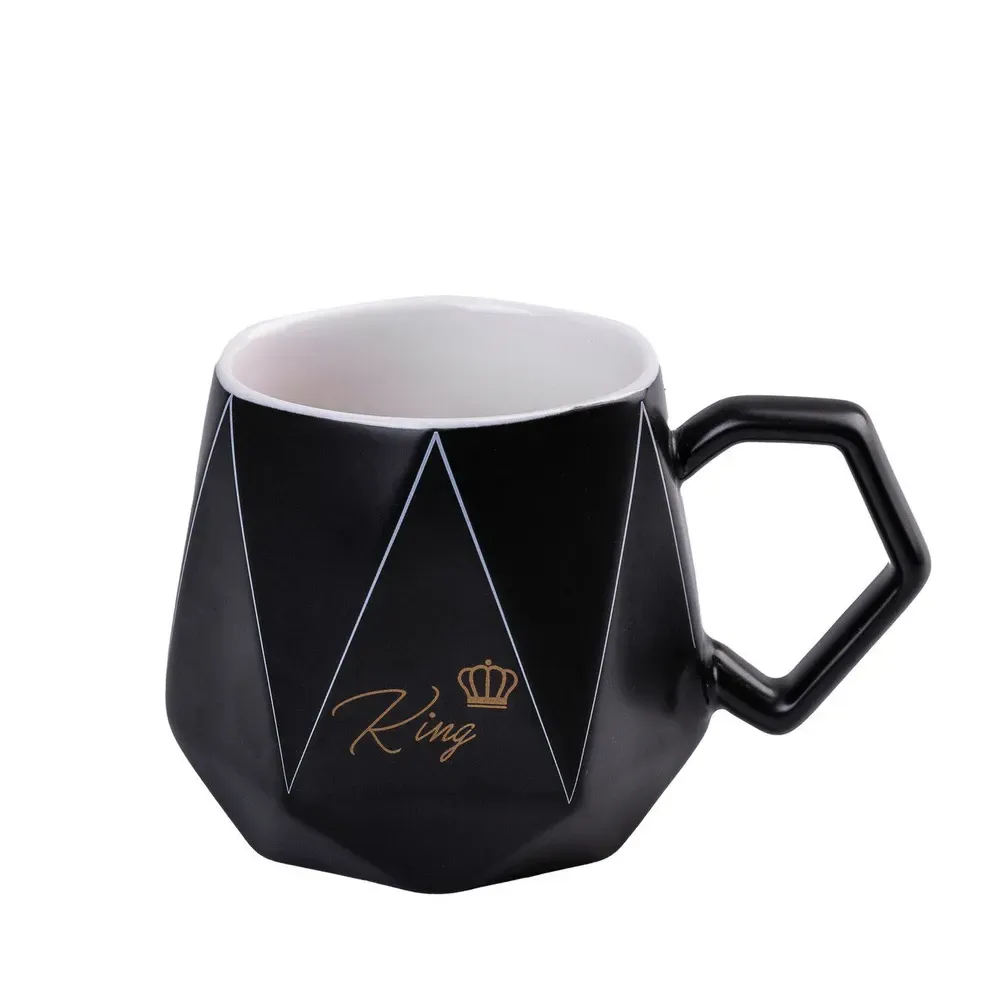 Чашка керамическая 400 мл Queen&King граненая Черный (HP77B)