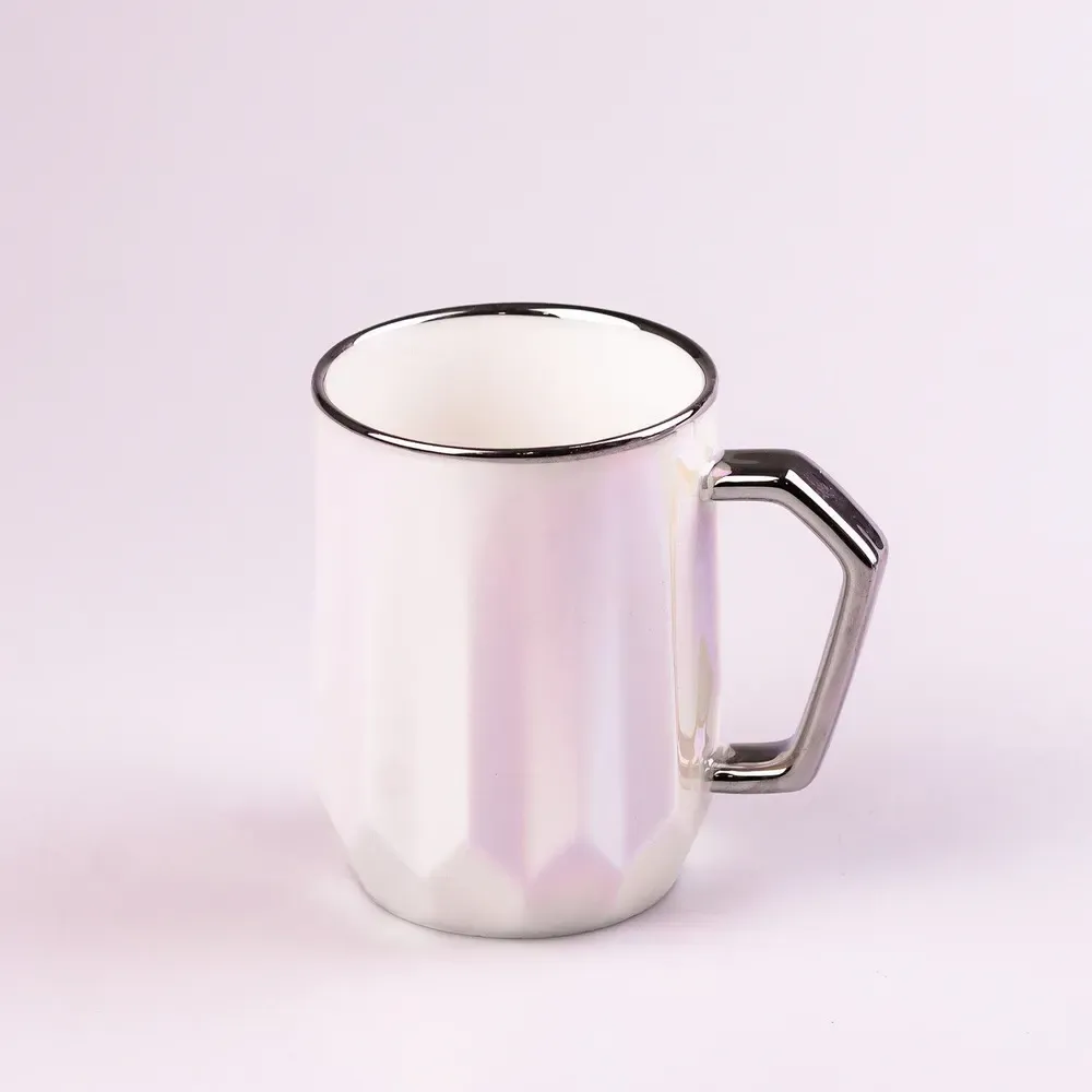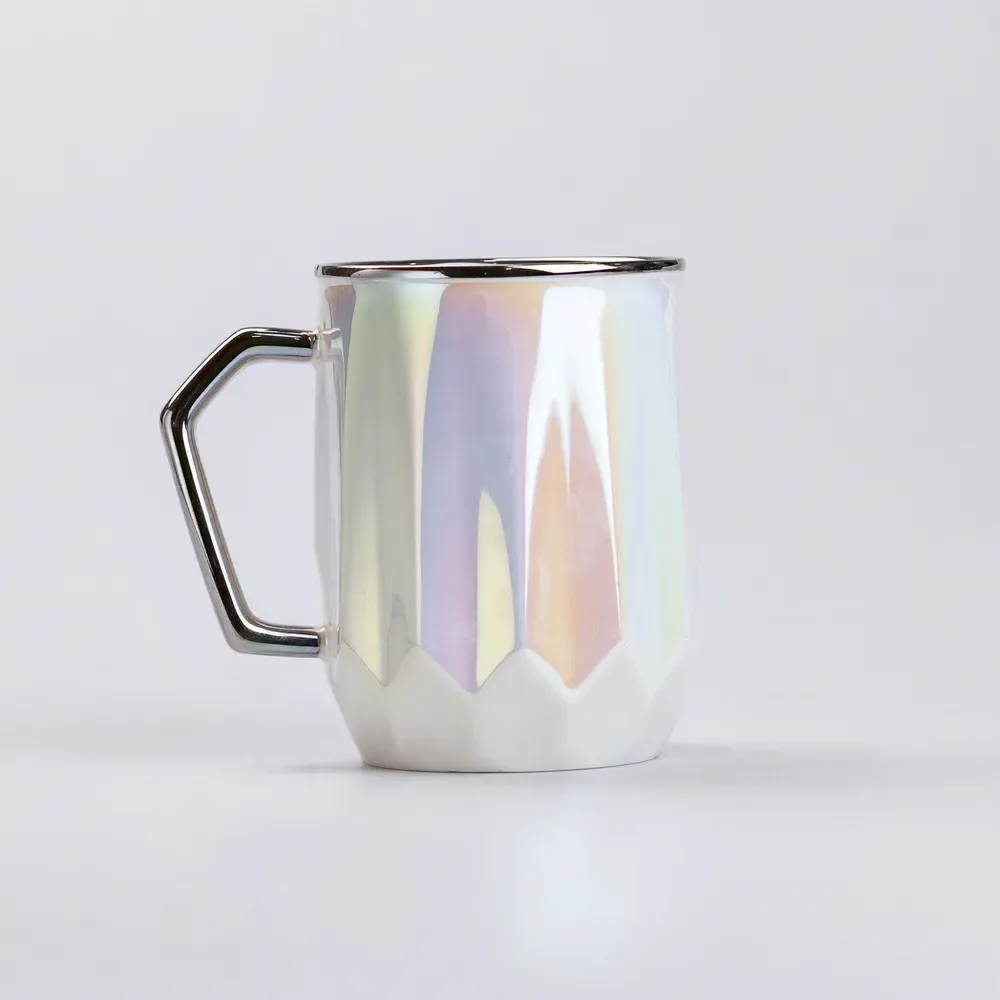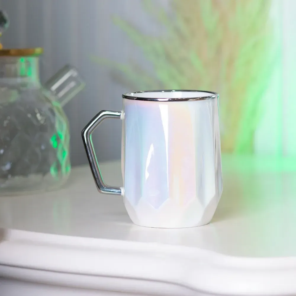 Стильная чашка в зеркальной перламутровой глазури – интересный вариант для презента и для повседневного использования. воздействиям.