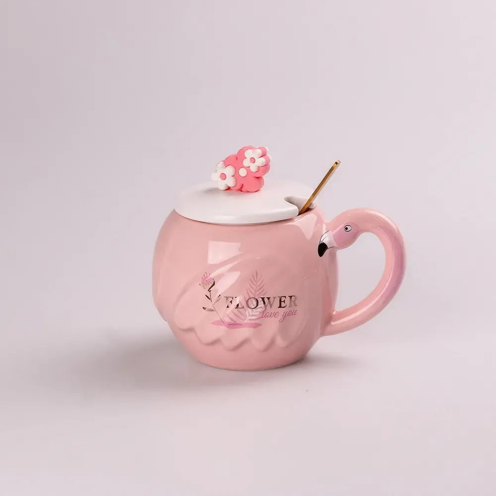 Чашка керамическая 500 мл Фламинго с крышкой и ложкой (HPCY8276FLAW)