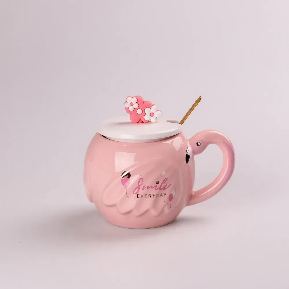 Чашка керамическая 500 мл Фламинго с крышкой и ложкой Smile (HPCY8276SM)