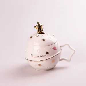 Чашка керамическая 500 мл Space Walk с крышкой и ложкой с крышкой Белый (HP8226W)