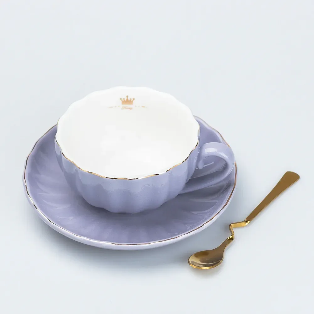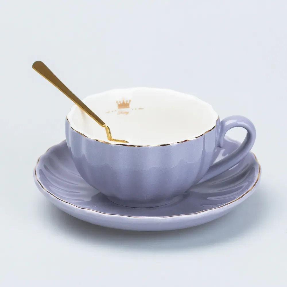 Чашка керамическая с блюдцем и ложкой 200 мл (HP7217B)