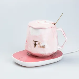 Чашка керамическая с крышкой 400 мл с подставкой для подогрева Розовая (HP7191P)
