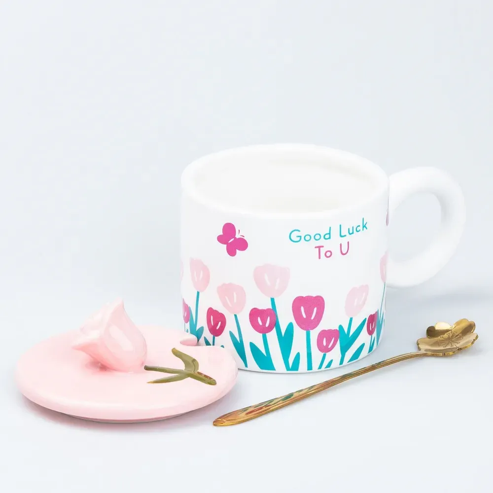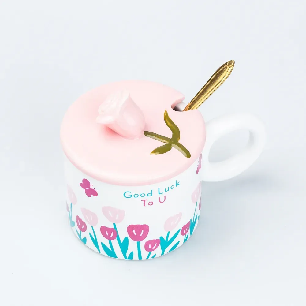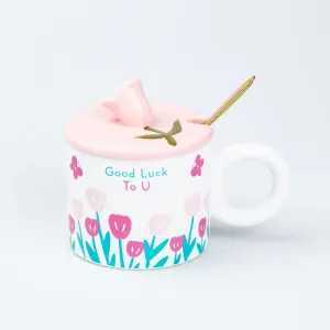 Чашка керамическая с ложкой и крышкой 300 мл (HP7190P)