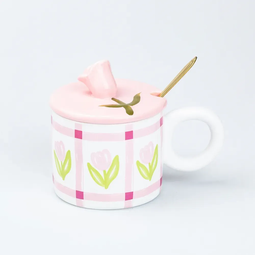 Чашка керамическая с ложкой и крышкой 300 мл (HP7190)