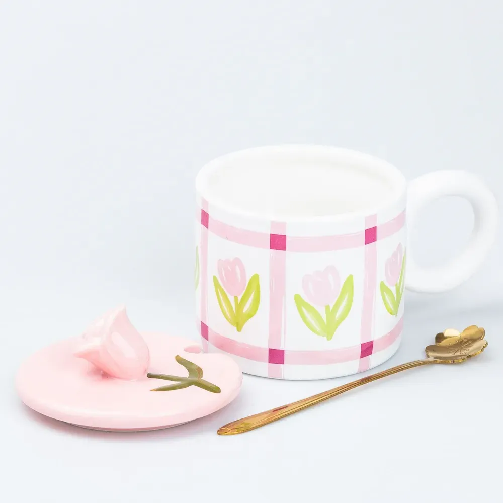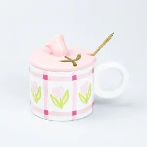 Чашка керамическая с ложкой и крышкой 300 мл. Эта красивая керамическая чашка с крышкой и ложкой однозначно станет вашей любимицей! Она неприхотливая в эксплуатации, прекрасно сохраняет тепло и подойдет как для офиса, так и для дома. наслаждаться чаем или кофе дольше.