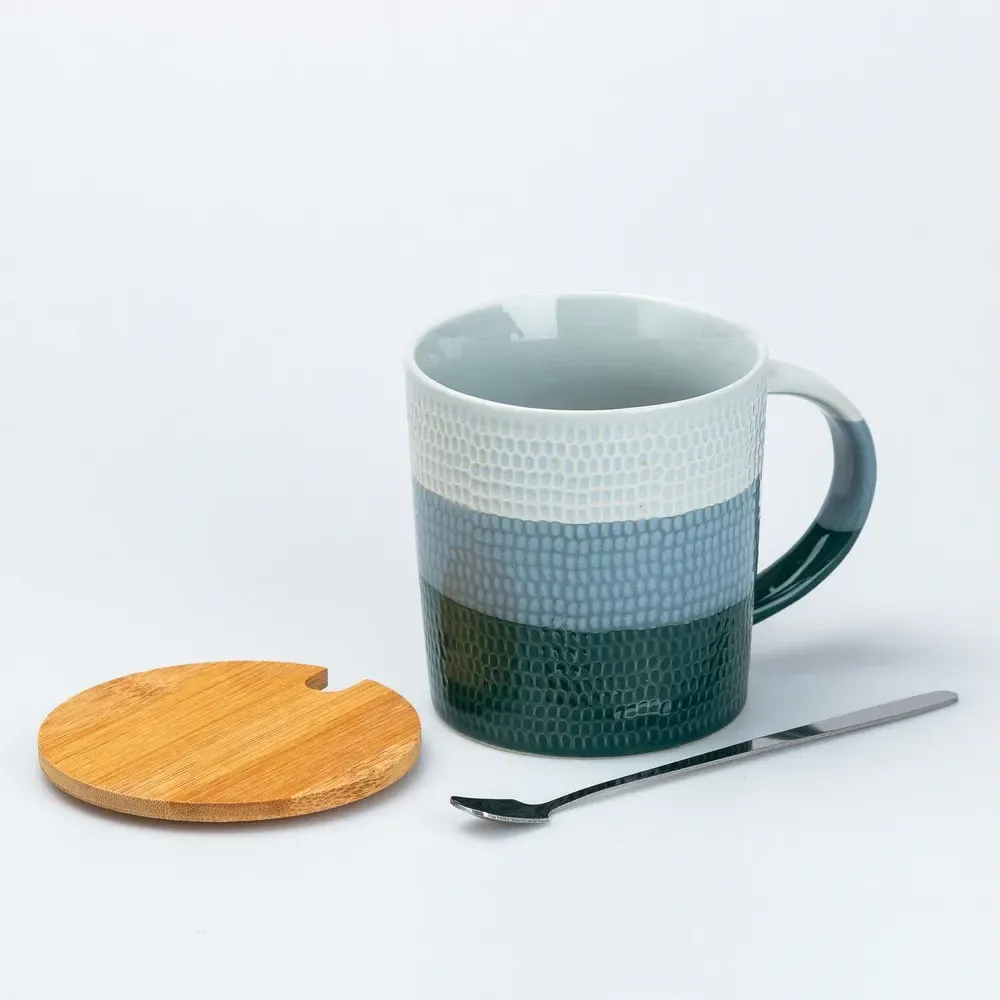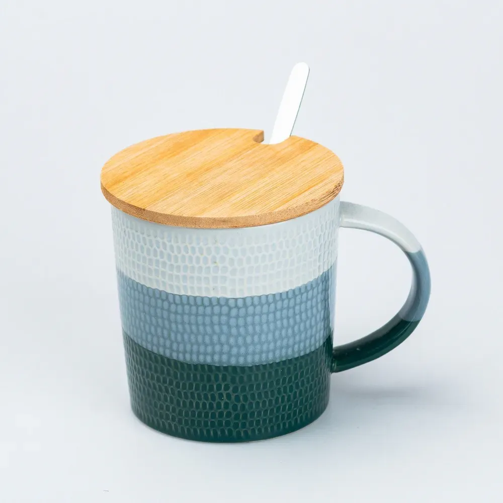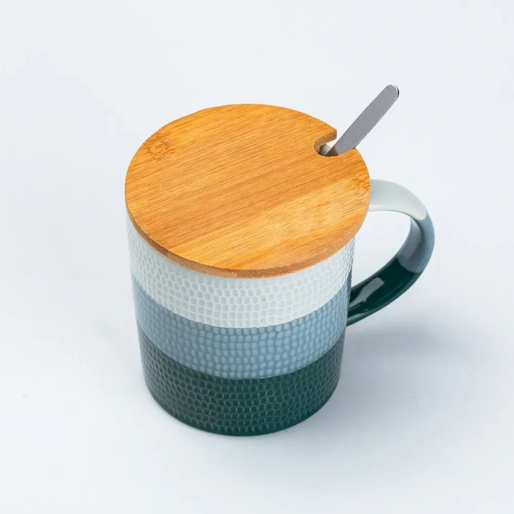 Чашка с бамбуковой крышкой и керамической ложкой 350 мл. Эта красивая керамическая чашка с бамбуковой крышкой и ложкой однозначно станет отличным подарком! Она неприхотлива в эксплуатации, отлично сохраняет тепло и подойдет для горячих и холодных напитков.