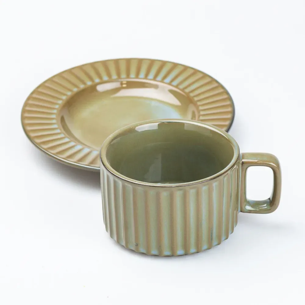 Чашка с блюдцем 250 мл керамическая Изумрудная (HP7210GR)
