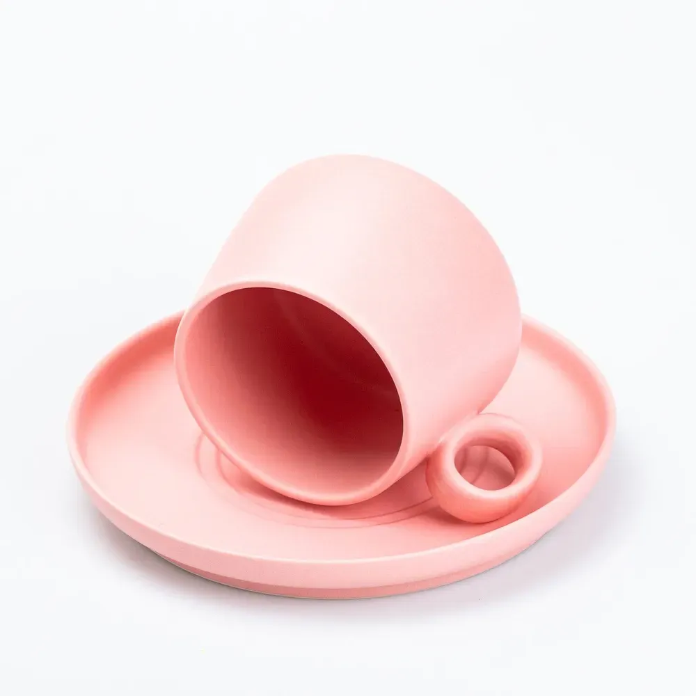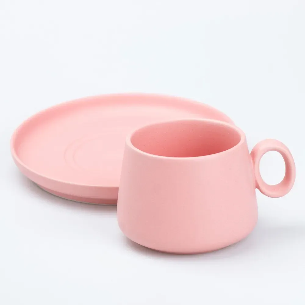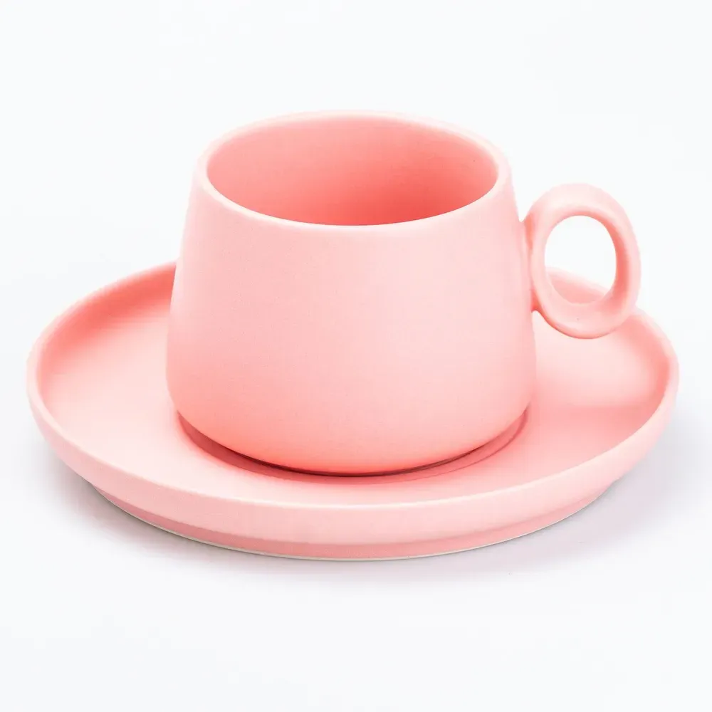 Чашка с блюдцем керамическая 300 мл Розовая (HP7209P)