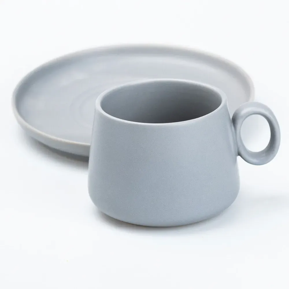 Чашка с блюдцем керамическая 300 мл Серая (HP7209G)