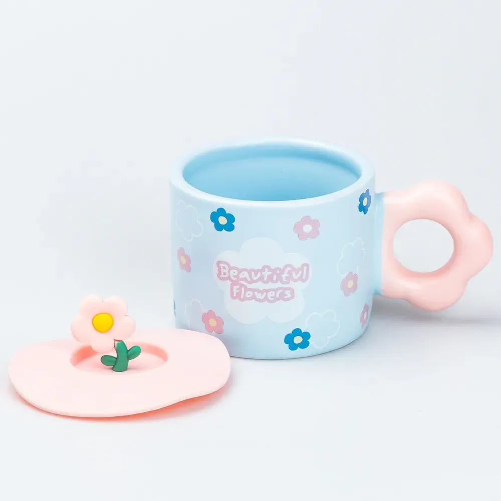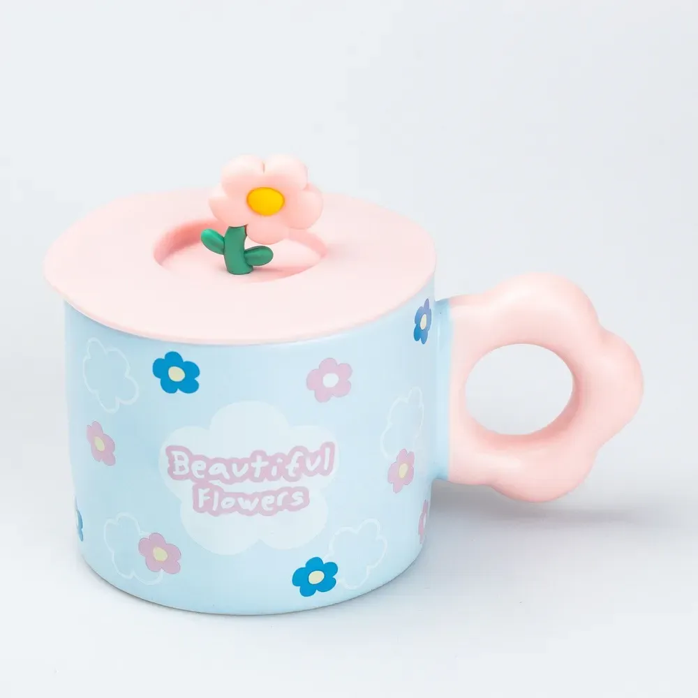 Чашка с крышкой 300 мл керамическая "Цветок" Голубая (HP7196BL)